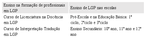 O programa curricular da disciplina de Língua Gestual Portuguesa (LGP) para o ensino secundário surge no seguimento das aprendizagens desenvolvidas nesta disciplina desde a primeira infância até ao final do ensino básico. Depreende-se que o aluno Surdo adquiriu naturalmente a LGP e aprofundou competências na sua primeira língua durante todo o percurso escolar, numa lógica de igualdade de oportunidades no acesso à educação, defendida pelos princípios legais expostos anteriormente (vide Introdução do “Programa Curricular de Língua Gestual Portuguesa - Educação Pré-Escolar e Ensino Básico”). Reforça-se aqui a necessidade desta língua ser reconhecida e dignificada pelo seu real estatuto, enquanto primeira língua da Comunidade Surda, e de, por direito, ser garantida a sua utilização no ensino dos alunos Surdos. Para uma verdadeira educação bilíngue, há que preservar a LGP, enquanto expressão cultural da Comunidade Surda, respeitando o papel fundamental do docente Surdo, enquanto transmissor legítimo da língua e da cultura da Comunidade e enquanto modelo de identificação natural para as crianças e jovens Surdos. (PORTUGAL, 2008 a, p.4).