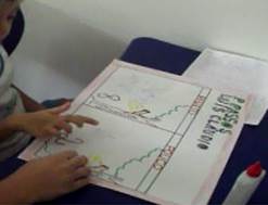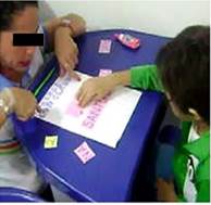 Depois de estruturado, as docentes iniciaram a implementação do PEI. A avaliação do desempenho do aluno, tendo como base os objetivos traçados (quadro 1), foi feita durante as reuniões com a pesquisadora, quando o material videografado das sessões era apreciado pelas professoras. Ademais, foram consideradas as produções escritas do aluno.