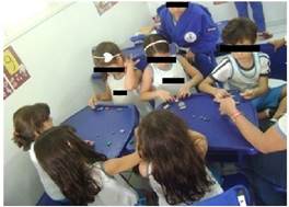 Por fim, foi observada pouca colaboração entre as docentes durante essas atividades. Enquanto a professora titular se responsabilizava pelos alunos com desenvolvimento típico, a professora auxiliar tinha a função de orientar e “cuidar” de João. Em muitas situações demonstrava não saber como proceder para atender às necessidades desse aluno.