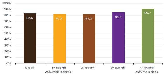 A partir desses dados, é possível constatar que a renda per capita tem uma implicação direta com a escolarização das pessoas com deficiência na faixa etária de ensino obrigatório, uma vez que ela intervém no acesso à escola. Ressalta-se que a maior proporção do percentual de frequência foi a dos alunos com deficiência possuidores de renda mais elevada, sendo o total de 89,7% dos mais ricos; enquanto que, entre os mais pobres, o percentual foi de 81,4%, estabelecendo-se uma diferença de percentual em 8,3% a menos (BRASIL, 2018).