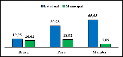 Pode-se inferir que houve um crescimento em todos os anos, o que resultou em um índice percentual de 17,97% do total geral de matrículas. Em nível nacional, os dados mostram que foi de 19,95%, na rede estadual, e 16,61%, na rede municipal. Importante destacar que o estado do Pará apresentou o índice de 50,98%, nas redes estaduais, e de 18,92, nas redes municipais. No entanto, constatamos que o maior número de matrículas dos alunos com deficiência está sob a responsabilidade dos municípios.
