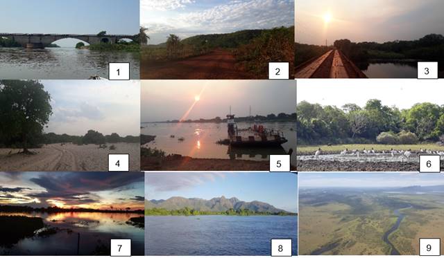 Legenda: 1 – Caminhos no Baixo Pantanal; 2, 3, 4, 5 e 6 – Caminhos no Médio Pantanal; 7, 8 e 9 – Caminhos no Alto Pantanal.