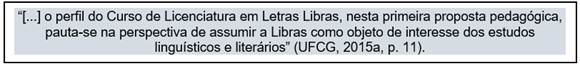 Tendo esses como pontos teóricos importantes, definimos o estudo do PP do curso de licenciatura Letras Libras da UFCG.