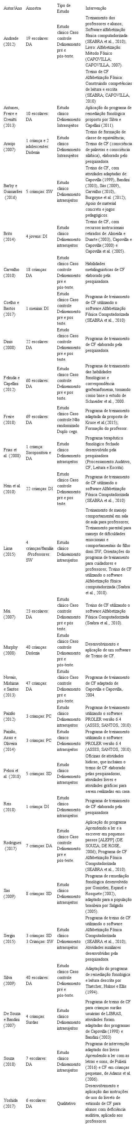 Treinamento de consciência fonológica para pessoas com necessidade educacionais especiais no Brasil: uma revisão sistemática