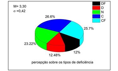 Entendemos que qualquer comparação entre tipos de deficiência viola os princípios fundamentais da inclusão, já que essas diferenças servem apenas à concepção médica da deficiência. Logo, a análise dos resultados deste bloco de questões é muito importante pois nos ajuda a avaliar se os professores compreendem a inclusão como fundamentada no modelo social. E, de fato, analisando as respostas, como será visto a seguir, podemos verificar uma concordância com os princípios da inclusão, ainda que não teoricamente fundamentada.