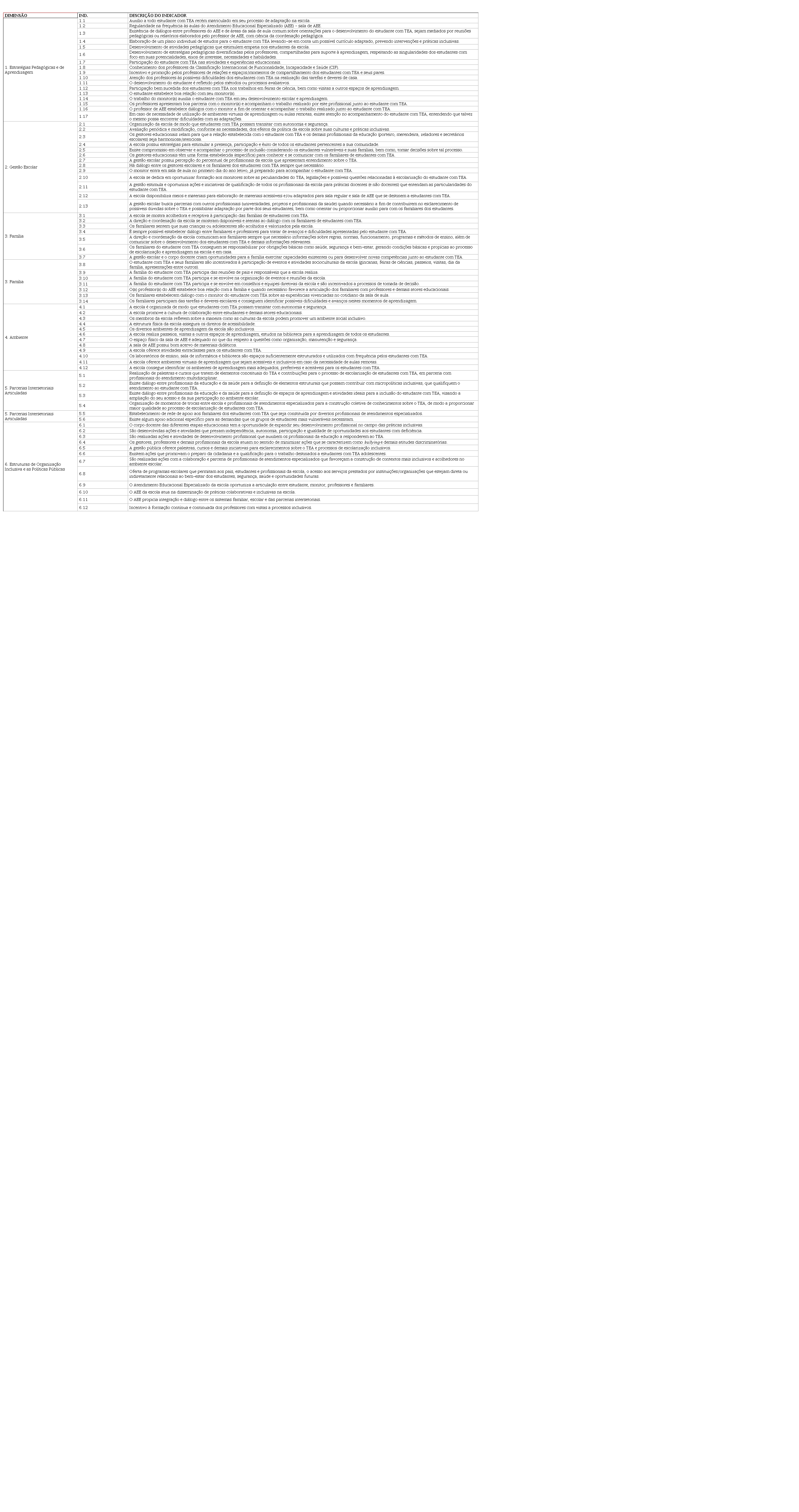 ). Com isso, é possível mapear o quanto cada dimensão está próxima ou distante do contexto inclusivo ideal, tomando como parâmetro esses indicadores.