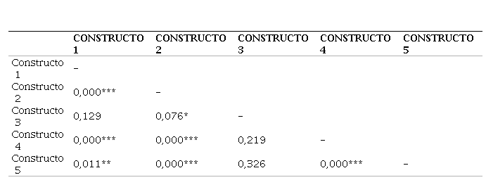 Conforme consta no Quadro 1, foi utilizado o Alpha de Cronbach para a análise da confiabilidade dos constructos previamente definidos. Com exceção do primeiro, cujo valor foi bastante próximo de 0,60, os demais se mostraram com valores muito superiores ao mínimo necessário para validação, indicando que os constructos são capazes de refletir com confiabilidade o fenômeno e possuem alto grau de consistência interna.