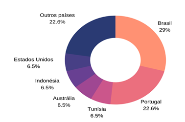 Identificamos que nove estudos (29%) foram desenvolvidos no Brasil, e sete (22,6%) em Portugal. A Tunísia, Austrália, Indonésia e Estados Unidos desenvolveram dois estudos cada (6,5%), e outros países (Reino Unido, Malásia, Japão, Equador, Macedônia/Grécia, Croácia e México) um estudo cada. Destaca-se que Brasil e Portugal, juntos, representam mais da metade dos estudos encontrados sobre o tema.