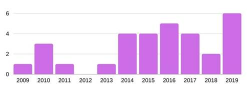 Podemos perceber que houve, a partir de 2014, um aumento significativo de pesquisas sobre jogos com o objetivo de ensinar línguas de sinais ou línguas orais escritas para surdos.