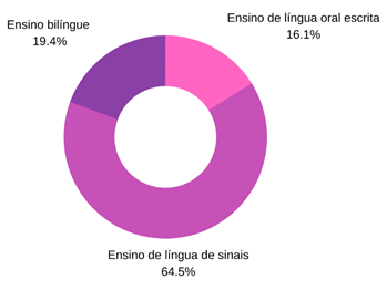 O próximo gráfico representa os estudos quanto à modalidade das línguas que os jogos pretendem ensinar: línguas de sinais, línguas orais escritas ou jogos bilíngues (para par linguístico de uma língua de sinais e uma língua oral escrita).