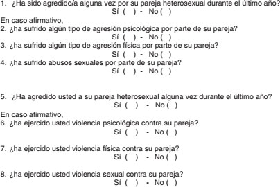 Violencia en las relaciones de pareja (Escala de Violencia en las Relaciones de Pareja). En esta escala se considera perpetración de violencia de pareja cuando una persona (hombre o mujer) declara haber perpetrado algún tipo de conducta violenta hacia su pareja heterosexual en el último año. Del mismo modo, se considera victimización de violencia de pareja cuando una persona (hombre o mujer) declara haber sufrido algún tipo de conducta violenta por parte de su pareja heterosexual en el último año. Teniendo en cuenta a ambos miembros de la pareja, la violencia se puede clasificar en unidireccional (uno de los miembros de la pareja informa de que ha perpetrado algún tipo de violencia hacia su pareja heterosexual, pero no declara haber sufrido ningún comportamiento por parte de su pareja heterosexual) o bidireccional (uno de los integrantes de la pareja informa de que ha perpetrado algún tipo de violencia contra su pareja heterosexual y a su vez ha recibido algún tipo de violencia por parte de su pareja heterosexual). La violencia de pareja incluye cualquier tipo de violencia en las relaciones de pareja (unidireccional hombre-mujer, unidireccional mujer-hombre y bidireccional). Este instrumento incluye cuatro ítems que miden la violencia sufrida y otros cuatro ítems que valoran la violencia ejercida hacia sus parejas en el último año (ver Anexo). Dos ítems del tipo Sí/No evalúan si los participantes han ejercido violencia de pareja o han sido víctimas de la misma. En caso afirmativo, los participantes tienen que especificar el tipo de violencia de pareja (psicológica, física y sexual) que han ejercido o sufrido. Computando los tres tipos de violencia de pareja se forman las variables perpetración y victimización. El análisis de componentes principales y rotación Varimax arrojó una estructura unifactorial con valor propio superior a 1, que explicaba el 73% de la varianza total. La consistencia interna global de la escala (α = .81), así como de la perpetración de violencia (α = .70) y de la victimización (α = .80) eran acep.