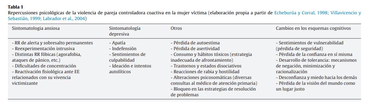 Toda violencia de pareja es susceptible de desestabilizar el equilibrio previo de la mujer, si bien la violencia controladora coactiva, por las características descritas, es la que parece tener una mayor potencialidad traumática, afectando al estado psicológico global de la víctima.