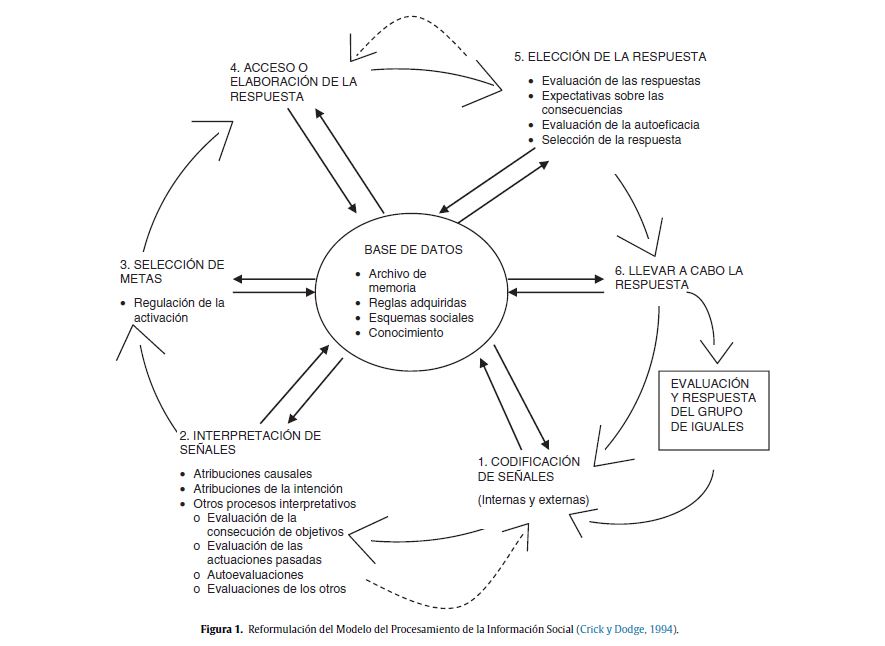Crick, N. R. y Dodge, K. A. (1994). A review and reformulation of social information processing mechanisms in children’s social adjustment. Psychological Bulletin, 115, 74–101. http://dx.doi.org/10.1037/0033-2909.115.1.74
