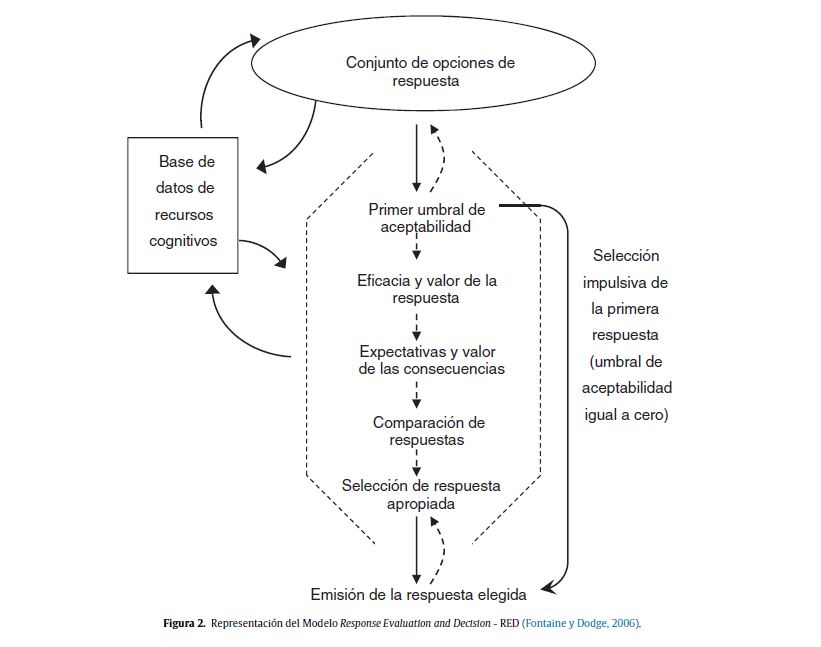 Fontaine, R. G. y Dodge, K. A. (2006). Real-time decision making and aggressive behavior in youth: a heuristic model of response evaluation and decision (RED). Aggressive Behavior, 32, 604–624. http://dx.doi.org/10.1002/ab.20150