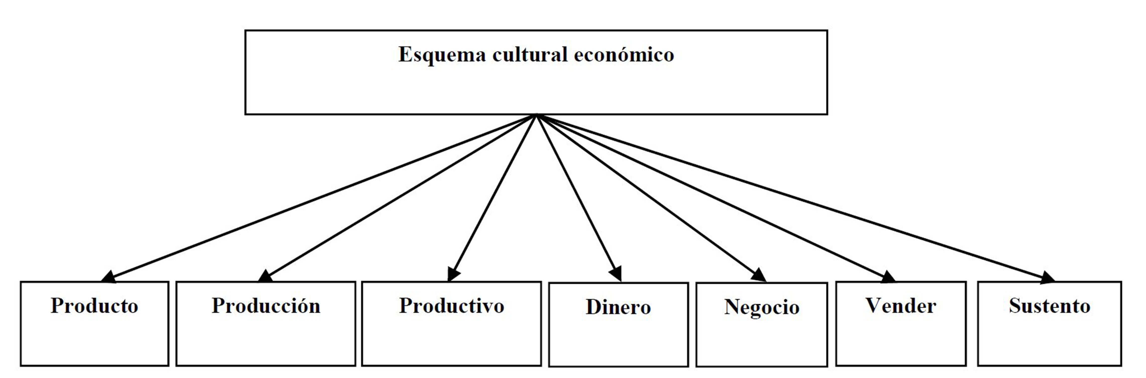 Por ejemplo, entre las palabras clave relacionadas con el caso particular del esquema cultural económico se localizaron en el discurso de los informantes las siguientes: producto, producción, productivo, dinero, negocio, vender y sustento.