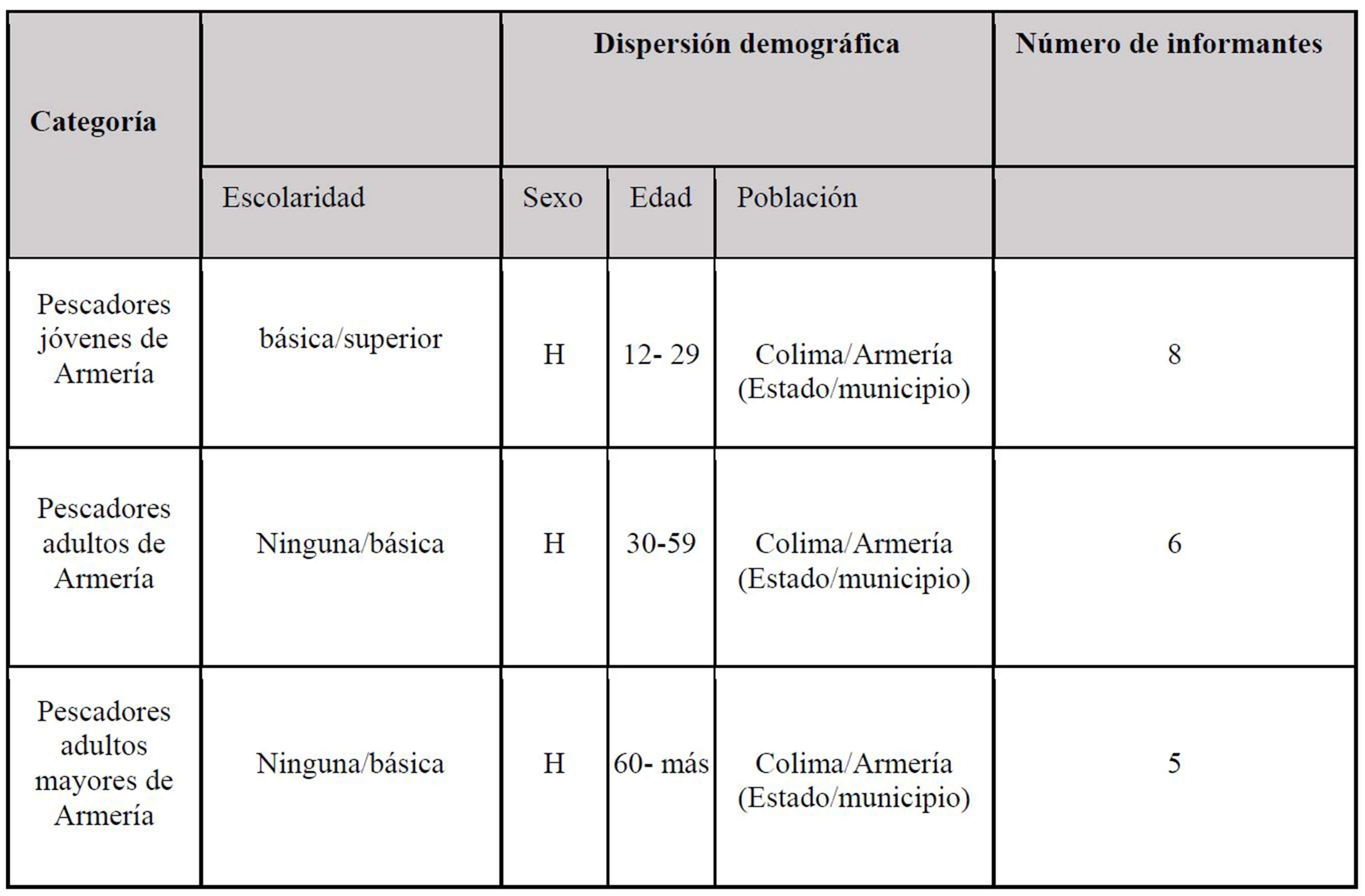 Las 19 entrevistas de los informantes se consideraron, finalmente, casos singularmente significativos que proporcionaron elementos para comprender a los pescadores de la cooperativa y que integraron a cada grupo de edad; todas ellas fueron esenciales para la investigación. Al respecto, se pudieron construir perfiles sociales y generacionales, pero también una tipología de pescadores hacia dentro de cada generación.