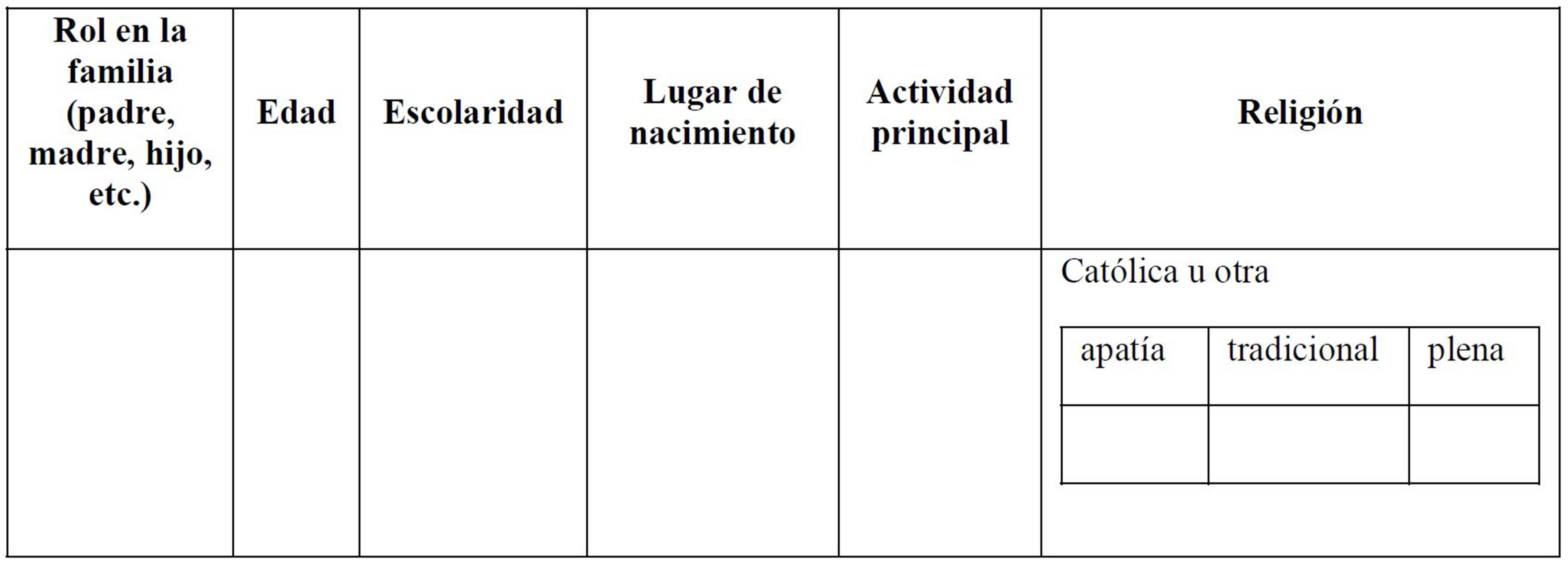En cuanto a religión, la finalidad fue ubicar la internalización de las referentes culturales de las creencias religiosas8 en relación con el trabajo de la pesca artesanal y el lugar que ocupa en la comunidad de pescadores.