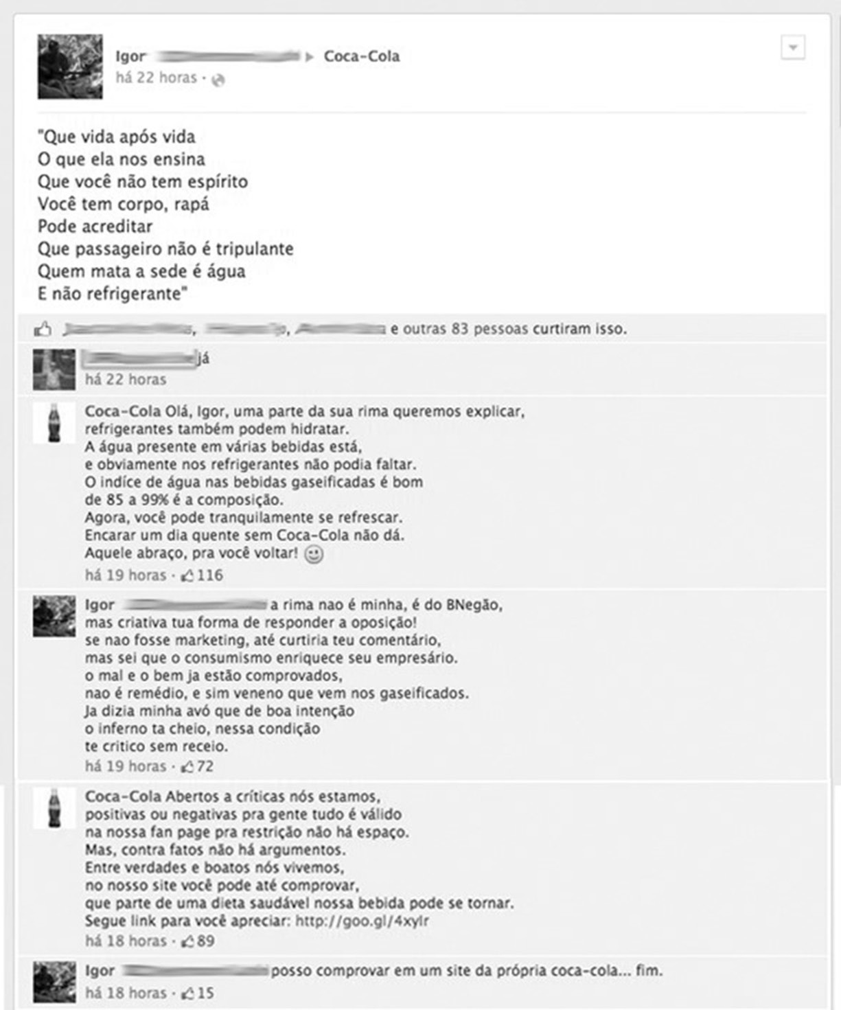Um internauta fez rimas criticando o refrigerante e a empresa respondeu da mesma maneira: