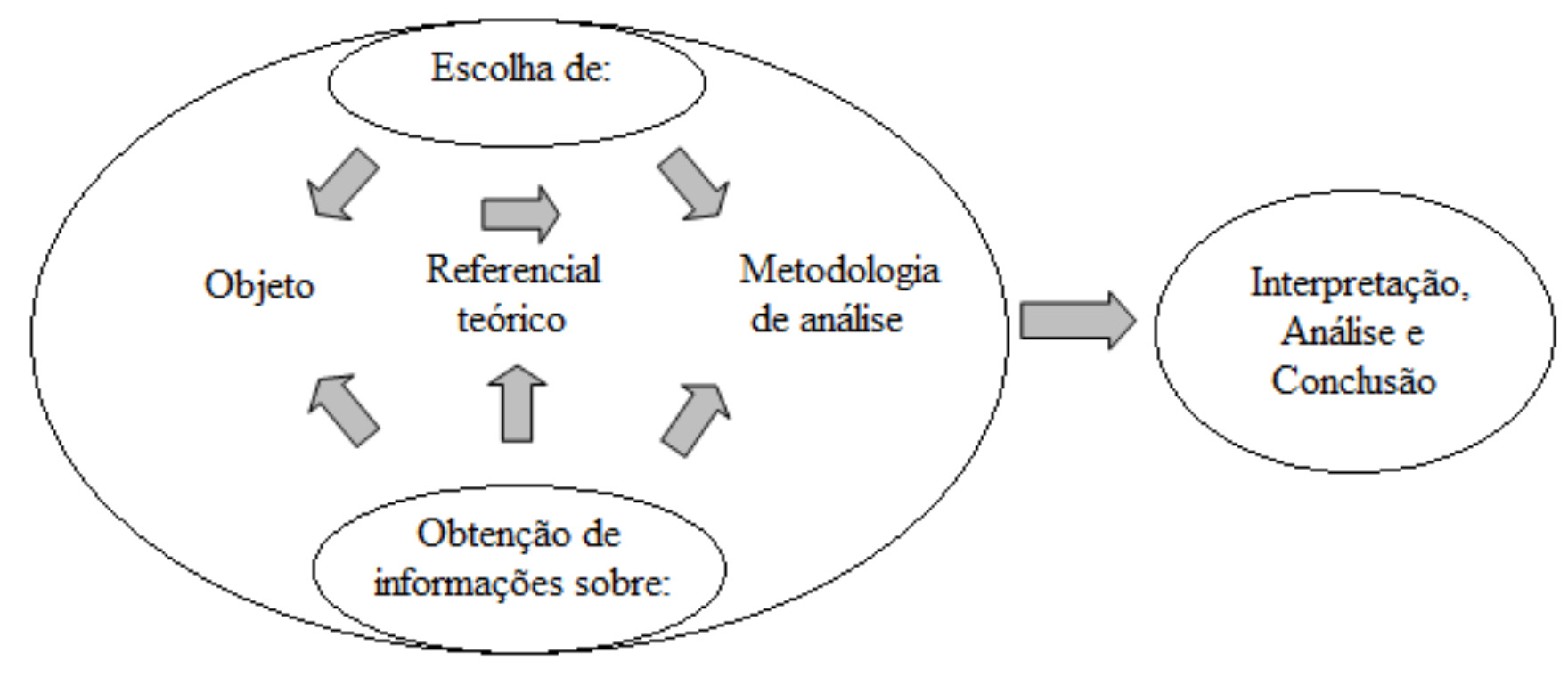 A Figura 1 resume as etapas e a sequência que foram adotadas para a condução da pesquisa, ou seja, duas atividades principais: a primeira, voltada para a definição; a segunda, para obtenção de informações. Essas duas etapas foram realizadas sobre o objeto, a teoria e a metodologia de análise, que possibilitaram a interpretação e análise dos resultados e, finalmente, o registro das conclusões do trabalho.