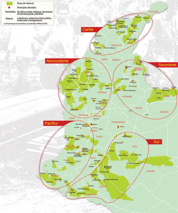 Colombia, por su diversidad étnica y cultural, presenta un sistema social complejo en cuanto a la pluralidad de las formas de ser, pensar, sentir y hacer de los diferentes grupos humanos; lo que se refleja, como lo expresa Geertz (2003), en las construcciones simbólicas por medio de las cuales las comunidades comunican, perpetúan y desarrollan sus conocimientos y actitudes hacia la vida. Es un país dividido en cinco regiones, cada una de ella con diferentes especificidades socio-culturales –prácticas, usos, costumbres y tradiciones–. Regiones Caribe, Noroccidente, Nororiente, Pacífico y Sur que se han visto afectadas por el fenómeno de la violencia, unas en mayor medida que otras dependiendo de la diversidad geográfica, económica y sociopolítica.