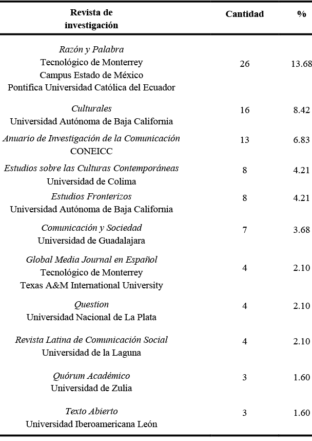 www.gmjei.com; www.comunicacionysociedad.cucsh.udg.mx;www.revistarazonypalabra.org, www.coneicc.org.mx