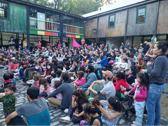 La inclusión en otros casos se da mediante la producción de obras adaptadas para que puedan disfrutarlas niñeces con hipoacusia o experiencias teatrales para que quienes están en situaciones de vulnerabilidad tomen contacto con la experiencia, como las funciones que una cooperativa teatral realiza llevando el retablo y el sonido al hall del Hospital Garrahan11 donde esperan cientos de personas que no les queda otra alternativa que estar allí o a veces incluso dedicadas a cada niño o niña hospitalizada, hasta pie de cama.