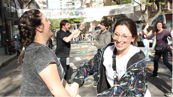 tenemos una actividad callejera [...] donde los chicos salen a jugar a la vereda y a la calle. La dinámica es que se incorporen los vecinos que, según un pequeño censo que hicimos nosotros mismos, son vecinos golondrina10 (asociado centro cultural cooperativo).