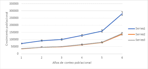 Los registros poblacionales son una de las mejores formas para dimensionar el crecimiento de Zumpango y su transformación de lo rural a lo urbano porque, como ya se ha mencionado, esto genera una demanda en todos los sentidos; por tanto, es importante hacer un recorrido en cuanto al aumento poblacional de los últimos 30 años.[15] Véase la Tabla 1 y la Gráfica 2 donde se recopilan los datos de la población total del municipio de Zumpango registrados por el Instituto Nacional de Estadística y Geografía (INEGI, 2021).