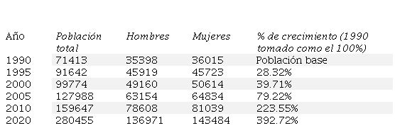 Tabla 1. Población total municipal de los últimos 30 años en Zumpango, Estado de México