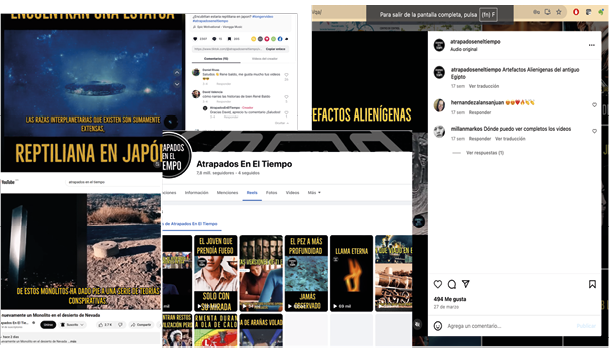 Por ejemplo, en las cuentas de Facebook que hemos dado seguimiento, es posible encontrar grupos que hablan sobre ufología, ciencia y conspiración (131 miembros); sobre la gran conspiración OVNI (232 mil miembros); ufología y señales de los tiempos (355 mil miembros); sobre revelaciones ufológicas (355 mil miembros); sobre conocimientos desconocidos (592 mil miembros). Así, en TikTok, Facebook, Instagram y YouTube estamos ante espacios de socialidad digital que animan y anidan la construcción de este tipo de narrativas, donde sus miles de seguidores cultivan creencias conspirativas en torno al ocultamiento que hacen los gobiernos de la presencia extraterrestre, los contactos, las abducciones; incluso de acuerdos que con algunas razas ha tenido algún mandatario norteamericano, razón por la cual, en los medios convencionales, no presentan estas noticias.