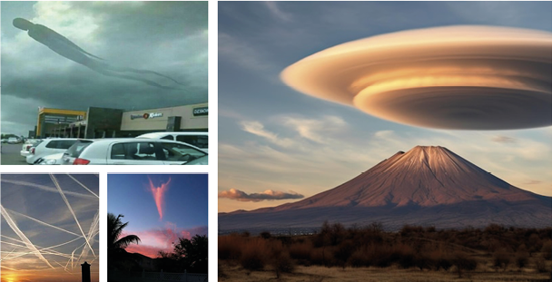Al respecto de estos contenidos, en redes sociales es común encontrarse con narrativas que plantean y hacen creer que incluso la composición de imágenes místicas o divinas que pueden formarse de manera natural en los cielos, sean la constancia del Proyecto Blue Beam. En esta teoría tienen cabida las llamadas nubes lenticulares, los chemtrails, incluso el espejismo conocido como Fata Morgana, que tienen explicaciones científicas, pero para los conspiracionistas son creadas con intenciones de control o para preparar la llegada de un nuevo orden mundial.