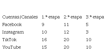 Es importante recordar que los estudios comprensivos tienen como premisa el análisis interpretativo de los atributos del objeto de interés, por lo tanto, para la tercera etapa, se decidió por un ejercicio colegiado que llevara a la selección de aquellas cuentas y contenidos que ofrecieran una perspectiva significativa con relación al tipo de narrativas que comprende esta investigación, las que sin duda contribuyen a alimentar las mentalidades de comunidades y usuarios de medios digitales en América Latina. En la Figura 2 se muestra el número de cuentas y canales que por etapas fueron analizadas.