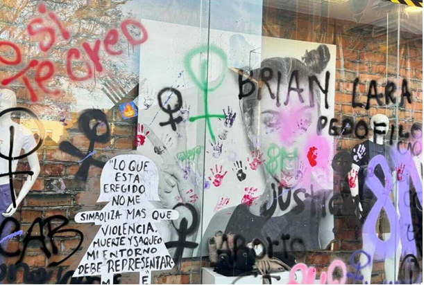 Este desajuste informacional no es lo único contrastante entre la información de la imagen y la del contexto, lo es también su presentación en el espacio, debido a que los lugares que estas expresiones ocupan pasan por una etapa de intervención intensa en la cual la información se hace presente con una saturación pictórica en aquellos inmuebles que guardan relación con una percepción imaginaria de ver los monumentos y las calles del centro histórico como espacio “enemigo” (iconoclasia) ya que en él residen las entidades que más han afectado al movimiento, como el gobierno o la Iglesia, señalan Itzel Ibarra y Sol López (comunicación personal, 3 de abril, 2024), participantes del 8M.