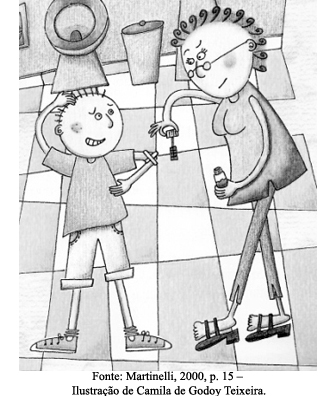 [...] às vezes eu ia lá e não tinha ninguém em casa. Eu pensando que ela estava na feira e ela estava namorando! Rá! [Narrativa do neto] (Martinelli, 2000, p. 22 [Tem um avô no meu quintal]).