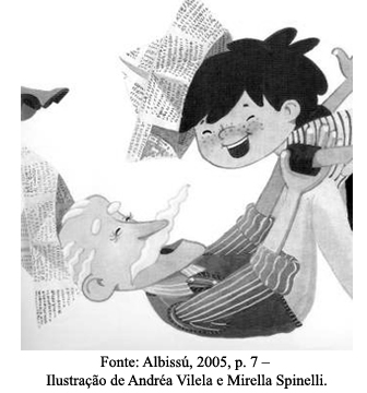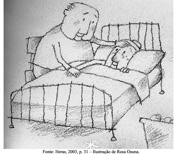 A neta aprende a conhecer melhor a avó e nutre uma relação de cuidado com ela. À noite, ao invés da avó contar histórias para ela dormir, é ela quem pula na sua cama para ler um livro, ressaltando aspectos positivos da sua velhice: "[...] ninguém no mundo inteiro é melhor companhia do que minha avó para ler livros ilustrados! Ela nunca tem pressa de mudar de página, coisa que meu pai sempre faz" (Mueller, 2006, p. 28). Já em Minha avó perdeu a memória, a relação mais enfocada não é a do neto com a avó doente, mas deste com o seu avô, que passa a morar em sua casa depois que a avó foi para uma instituição de longa permanência. Entretanto, é este avô que explica para o neto o que houve com a avó, assunto até então ocultado pela família, e o leva para visitá-la pela primeira vez. Nesta ocasião, o neto pede para que a avó lhe conte algumas histórias e fica admirado ao ver que ela não lembra dos fatos mais recentes, mas sabe contar as histórias antigas com uma impressionante riqueza de detalhes. Os dois netos não apenas cuidam de suas avós como descobrem nelas uma espécie de recompensa da doença: uma característica que as potencializa positivamente para outras atividades, como ler ou contar histórias.
