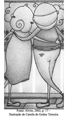 Além do questionamento proposto pelas histórias acima citadas, apenas duas histórias, Avós e Meu avô e o gênio, retratam uma relação de afetividade mais direta entre casais de idosos. Eles se abraçam, trocam afetos e parecem felizes com o companheiro, que aparentemente é de longa data. Acredito que o fato de poucas histórias trazerem esse tipo de cena reflita o lugar em que posicionamos o velho dentro do tecido social: casamento, sexualidade e velhice parecem não combinar. Alguma coisa fica fora do tom quando a avó usa uma blusa decotada, está arrumada de forma exuberante, resolve sair para dançar e se divertir, namorar ou casar. Imaginar um idoso tocando e beijando outro provoca uma certa instabilidade que não acontece quando se fala em sexo e amor na juventude. Enquanto o jovem é belo, propício e legitimado para isso, o velho parece ter-se tornado (ou precisar tornar-se) assexuado com o passar do tempo (Butler; Lewis, 1985; Ramos, 2009). Em Meu avô e eu, uma situação de flerte - não concretizada - entre os moradores do lar de idosos elucida algumas restrições vividas na velhice: "dentadura solta", diz Joaquim ao ouvir o barulho que Binoca fazia com a boca. "Isso afasta qualquer interesse por ela" (Guimarães, 2000, p. 14), conclui o personagem.