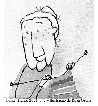 - Vou esconder estas pernas, que as tenho fininhas como agulhas de tricotar (Heras, 2003, p. 13-23 [Avós]).