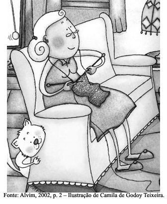 Justamente porque a velhice representa a última fase do ciclo vital é que ela parece caminhar acompanhada da morte. Como destaca Paiva (2008), os livros infantis que retratam temas delicados, como a morte, muitas vezes abordam essa temática por meio do decesso dos avós, "[...] indicando, de certa maneira, uma tendência de se privilegiar uma morte 'natural', já que são velhos e chegou a hora" de se despedirem (Paiva, 2008, p. 47). Essa mesma associação é encontrada no estudo de Wiseman (apud Mendes, 2013) sobre a morte na literatura infantil norte-americana. De acordo com a autora, os livros infantis que abordam esse tema normalmente retratam a morte de um personagem adulto, dos quais grande parte são avós.