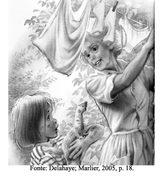 Esse intuito de ensinar, de passar uma aprendizagem significativa para o leitor, é bastante recorrente nos livros infantis (Kaercher; Dalla Zen, 2009). Todavia, mesmo quando o livro não tem essa intencionalidade explícita, ainda assim ele se faz educativo e didático, pois produz saberes e verdades que vinculam seus personagens a determinadas formas de ser, de se relacionar e de estar no mundo. Como nos lembram Giroux e McLaren (1995), a pedagogia não diz respeito apenas aos modos e às práticas educacionais escolares, estando presente em qualquer lugar em que o conhecimento seja produzido, "[...] em qualquer lugar em que exista a possibilidade de traduzir a experiência e construir verdades, mesmo que essas verdades pareçam irremediavelmente redundantes, superficiais e próximas ao lugar-comum" (Giroux; McLaren, 1995, p. 144). Nesse sentido, o livro infantil possui um estatuto pedagógico (Fischer, 1997) que, ao colocar em circulação determinados discursos, amplia o efeito dos mesmos e, ao repeti-los constantemente, naturaliza-os como desejáveis e verdadeiros. Mas, que representações seriam essas?