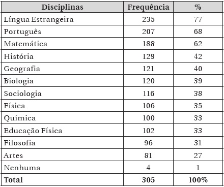 Perguntamos aos participantes se alguma das disciplinas do currículo escolar contribuiu para seus projetos de vida. As respostas obtidas estão na tabela 3.