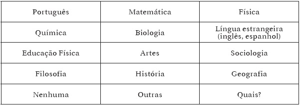 7. Pensando nas matérias que você tem na escola, quais delas contribuem para seu projeto de vida?