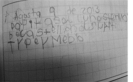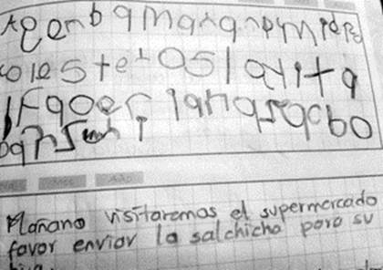 Nivel 2 - Los niños y niñas usan mayor número de grafías y son más parecidas al trazo de la letra, el estudiante sordo entiende la escritura como algo total que representa alguna información.