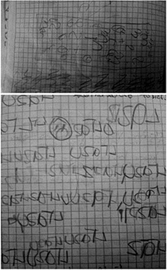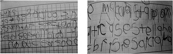 Nivel 1 - Los niños y niñas sordos atravesaron por este nivel al realizar la reproducción de algunos rasgos que constituían formas de escritura.