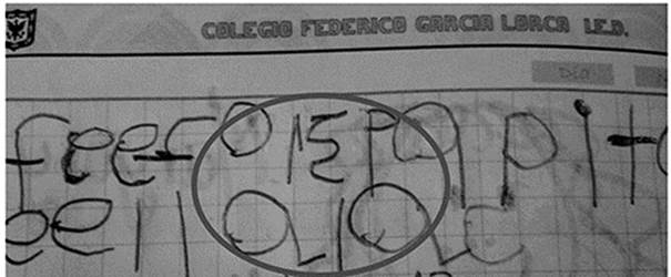 Nivel 3 - En este nivel surge en los niños la hipótesis silábica, los niños y niñas sordos ya tienen la habilidad de producir grafías parecidas a las letras. En esta etapa los niños y niñas sordos empiezan a otorgar relación entre la forma dactilológica de la letra y la representación escrita que hay en su cuaderno, tablero o libro que esté observando.