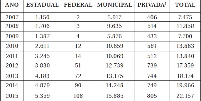 Diante disso, passamos a refletir sobre questões que atravessam os processos de escolarização de alunos com deficiência, transtornos globais do desenvolvimento e altas habilidades/superdotação, à luz das contribuições de Sousa Santos (2006; 2007), iniciando por três questões centrais que atravessam as políticas de Educação Especial na perspectiva da inclusão escolar: os processos emblemáticos de acesso, permanência e apropriação do conhecimento. Apresentamos dados sobre o fluxo de matrícula de alunos com deficiência, transtornos globais do desenvolvimento e altas habilidades/superdotação, tendo como referência o Censo Escolar das Escolas de Educação Básica do Espírito Santo, conforme Tabela 1 que segue.