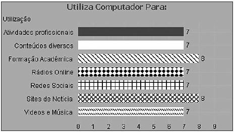 Em relação aos espaços de utilização da tecnologia, os entrevistados com ensino superior relataram, conforme Figura 2, abaixo, o uso para a formação acadêmica (8), em sites de notícias (8), redes sociais e atividades profissionais (7), entretenimentos, entre outros(7).