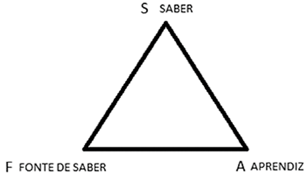 A configuração de aprendizagem segue um esquema similar ao do triângulo didático-pedagógico, conforme pode ser observado na Figura 5.