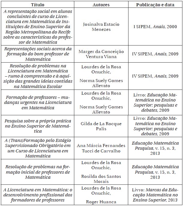 Keywords: Teacher Training, Mathematics, Mathematical Education, Higher Education, Mapping of Researches.