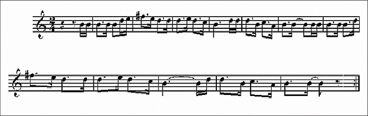 Outro elemento fundamental que caracteriza essa prática consiste na estrutura rítmica da melodia, composta de compassos binários. Essa fórmula é mantida durante todo seu percurso, o que também facilita a participação dos mais jovens. Como afirma Chaves (2014, p. 254, grifos no original):