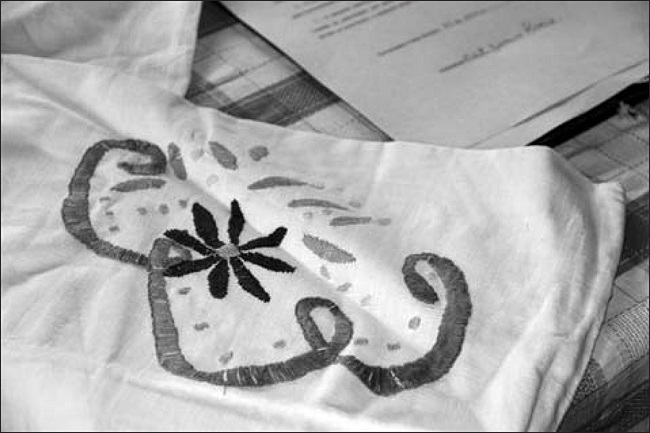 Benta: Ah! Eu tenho uns bordados da tua mãe também, tu queres ver? A tua mãe também bordava [sic] muito...